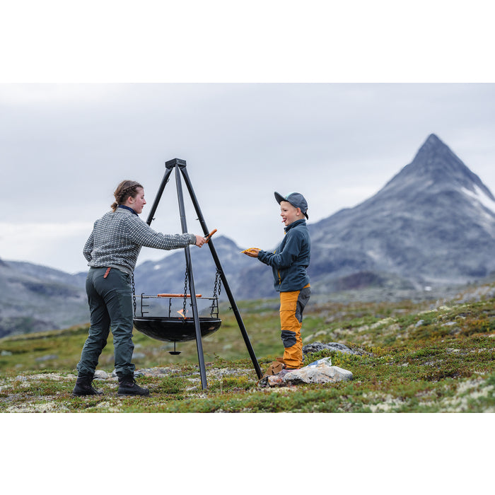 Bålpannen på 170 cm er en klassiker for helårsbruk og et naturlig samlingspunkt ute. Den passer perfekt sammen med vår 58 cm stekehelle, kaffekjele, vaffeljern eller toastjern, og gir deg friheten til å lage mat på mange måter, eller bare nyte varmen og stemningen fra åpen ild.