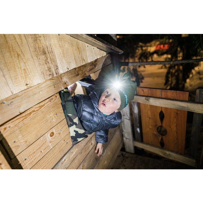 Kidled 4R er en trygg og brukervennlig hodelykt laget spesielt for barn. Perfekt for lek, lesing, turer i mørket eller små ekspedisjoner i hagen og på hytta.