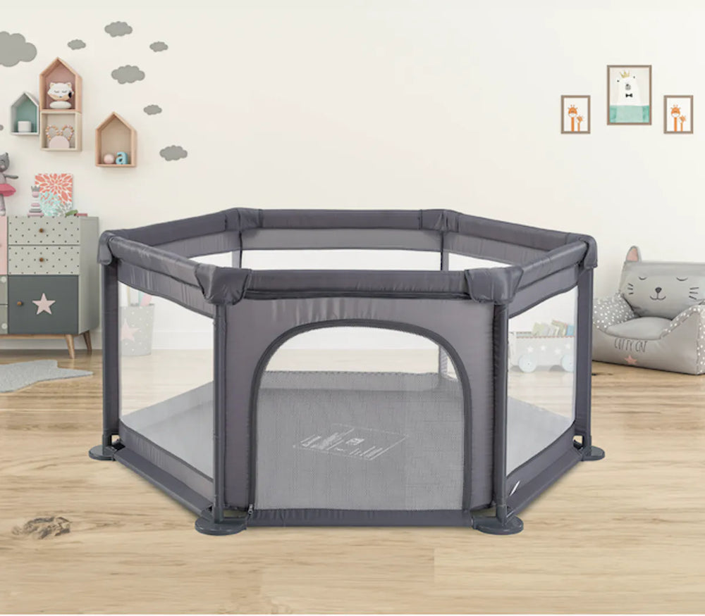 Med Hex får barnet ditt sitt eget lille univers å leke i, enten hjemme eller på tur. Den sekskantede formen gir god plass til utforsking, samtidig som den solide konstruksjonen holder barnet trygt. Sideveggene i netting gjør at du alltid har full oversikt, og glidelåsåpningen gir barnet frihet til å gå inn og ut på egen hånd når du følger med.