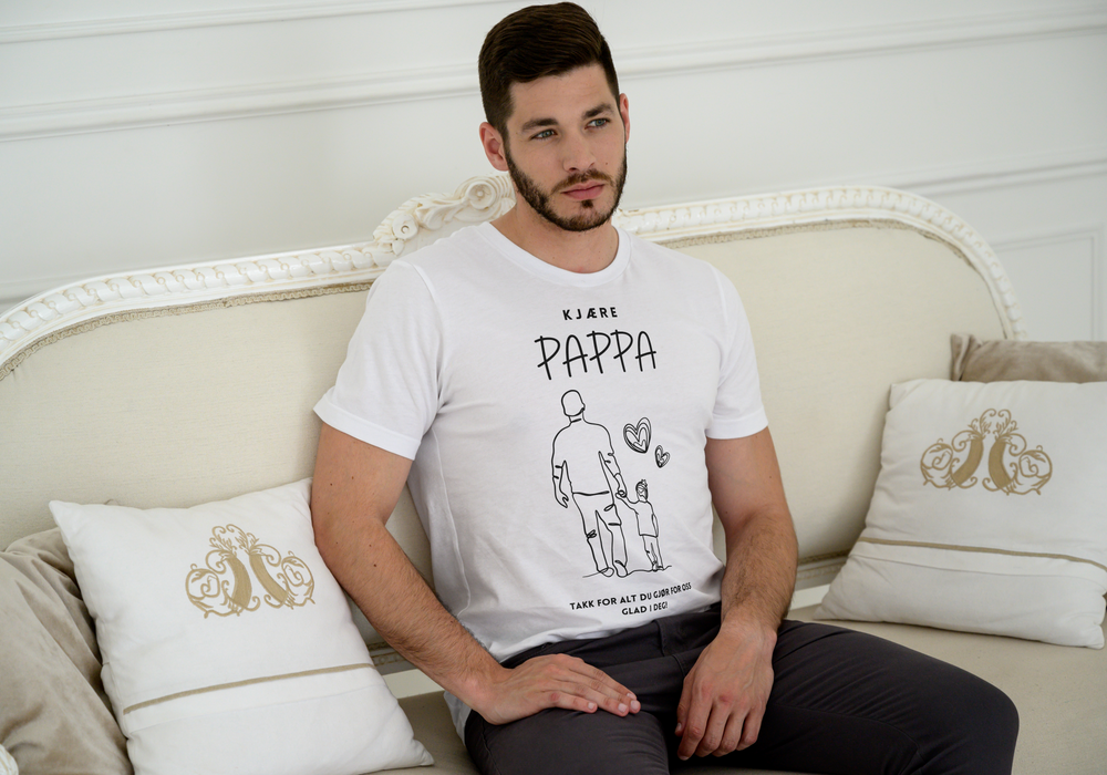 Noen øyeblikk sier mer enn tusen ord. Motivet på denne t-skjorten viser pappa og barnet som går hånd i hånd, side om side, akkurat slik livet skal være. Den symboliserer trygghet, kjærlighet og alt det usagte som ligger i små hender som stoler på store.