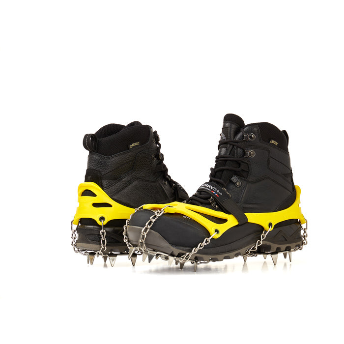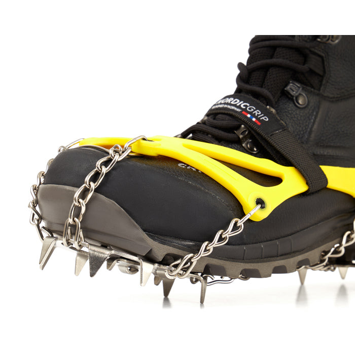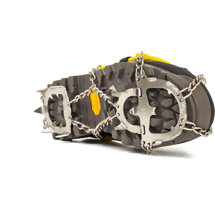 Disse broddene er designet for deg som beveger deg utenfor allfarvei, enten det er på glatte bygater, i dyp snø eller krevende terreng. Laget av en slitesterk TPE-blanding og utstyrt med herdet rustfrie stålpigger festet i kjetting, gir de deg et suverent grep under alle forhold. Perfekt for både arbeidssko, fjellstøvler og kraftigere vinterfottøy.