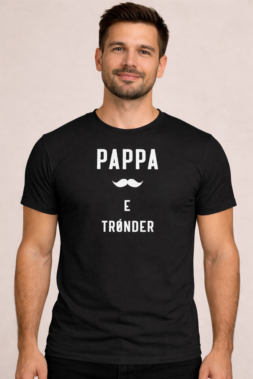Denne t-skjorten er for pappaen som vet hvor han kommer fra. En trønderpappa står støtt, snakker rett fra levra og bærer identiteten sin med stolthet. Med teksten “Pappa e trønder” og den klassiske barten midt i designet, er dette en skjorte som sier mye med få ord.