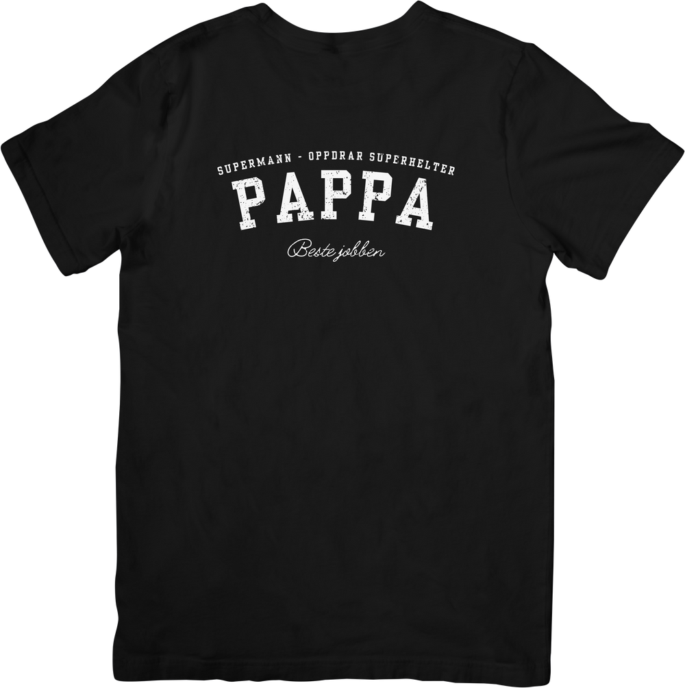 Denne t-skjorten er laget for pappaen som gjør det umulige hver eneste dag. Ikke med kappe, men med tålmodighet, styrke og kjærlighet. Teksten sier det rett ut: Supermann kan være imponerende, men det er pappa som oppdrar ekte superhelter.