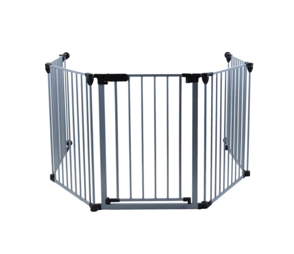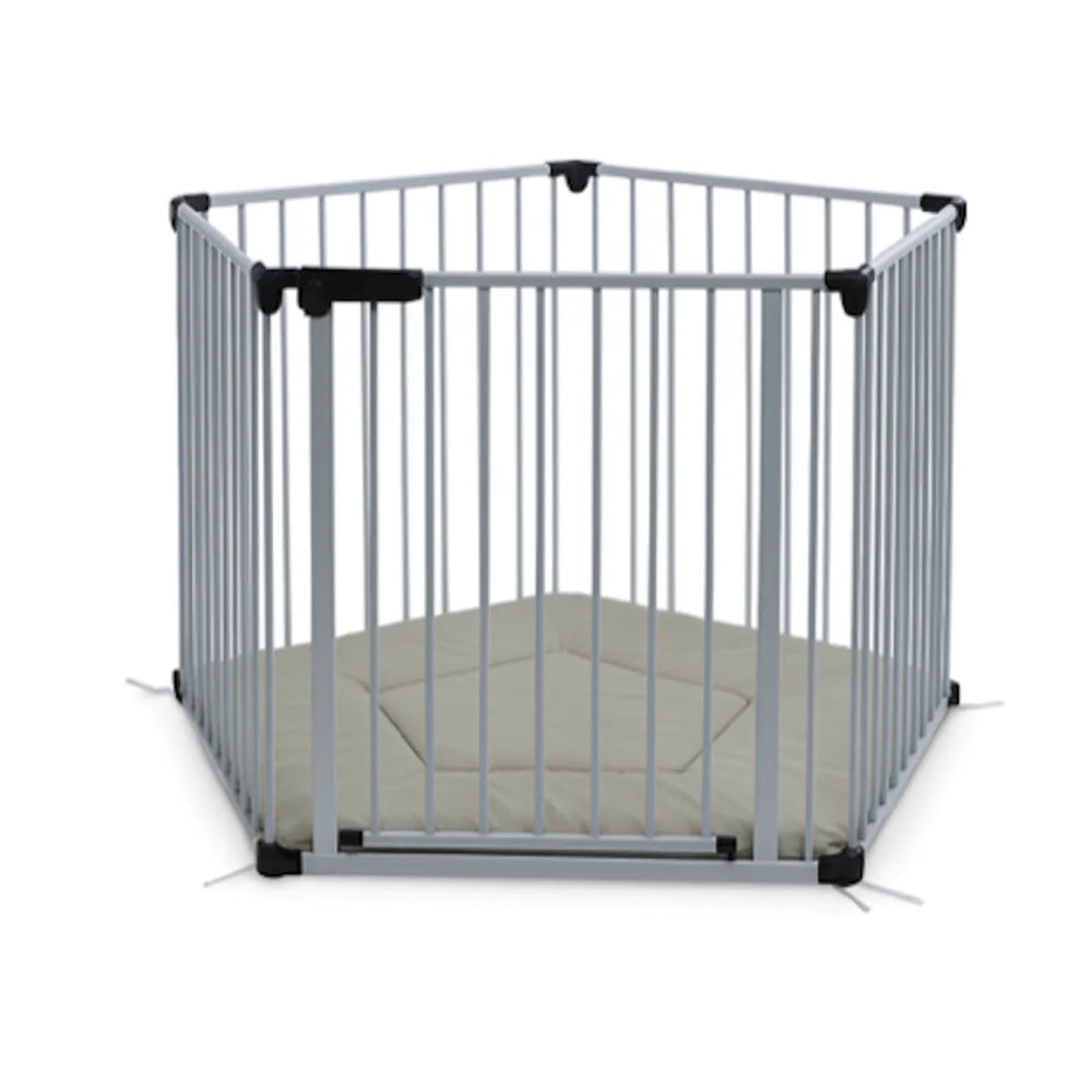 Med denne allsidige sikkerhetsgrinden kan du skape et trygt miljø hjemme, enten det er foran peisen, ved trappa, i døråpninger eller som en romdeler. Den solide metallkonstruksjonen gir pålitelig beskyttelse, og med fem fleksible moduler kan du bygge akkurat den løsningen du trenger.